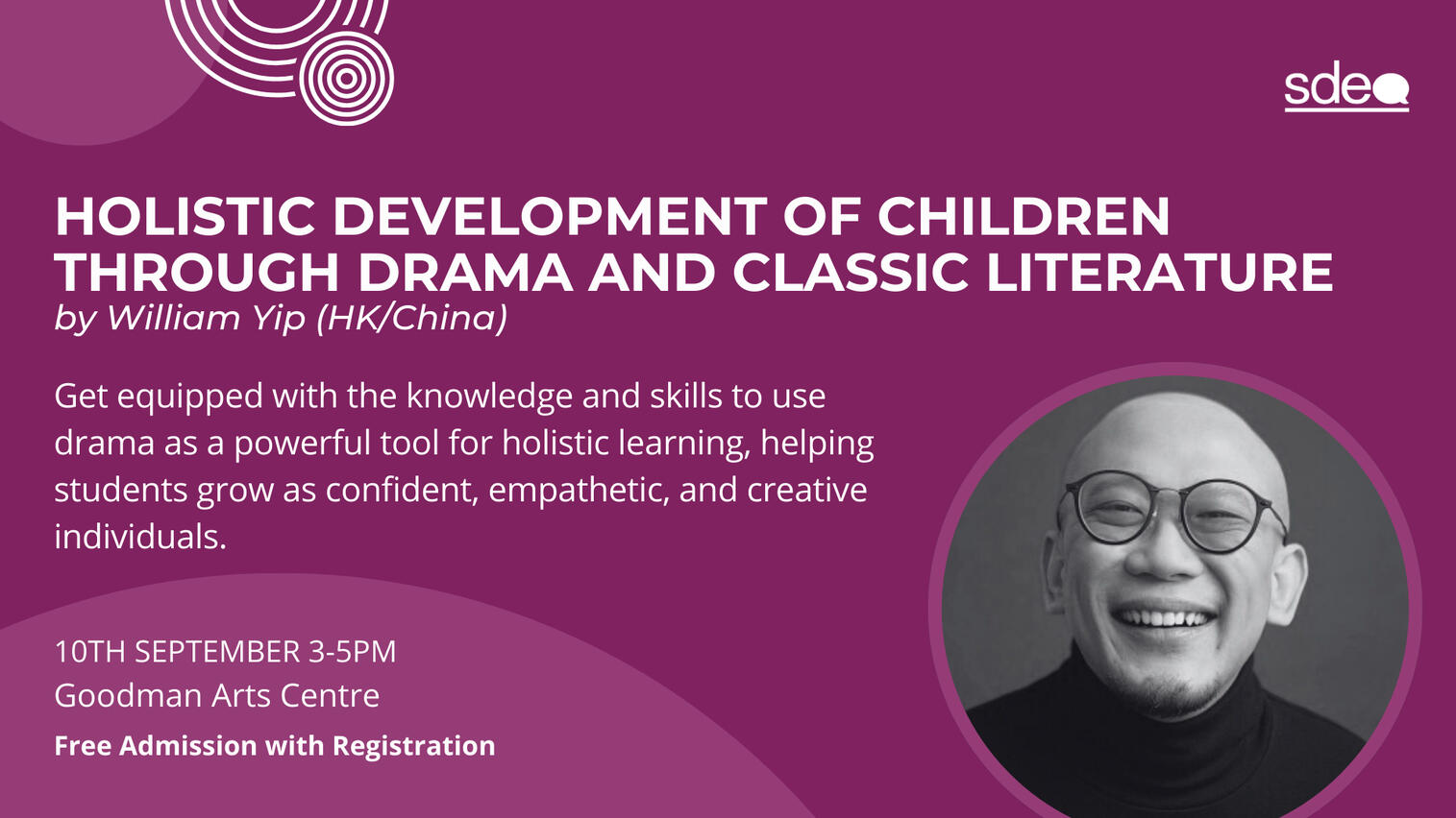 Venue: Goodman Arts CentreLearning outcomes:By the end of this training, teachers will be able to:- Design and implement drama-based lessons that promote the holistic development of children.- Create an inclusive and supportive classroom environment where every child feels valued and encouraged to participate.- Facilitate activities that nurture emotional intelligence, social skills, creativity, critical thinking, and cognitive development.- Inspire students to engage deeply with classic literature, transforming it into a dynamic and relevant part of their educational journey.Teachers will leave the program equipped with the knowledge and skills to use drama as a powerful tool for holistic learning, helping students grow as confident, empathetic, and creative individuals.Suitable For: